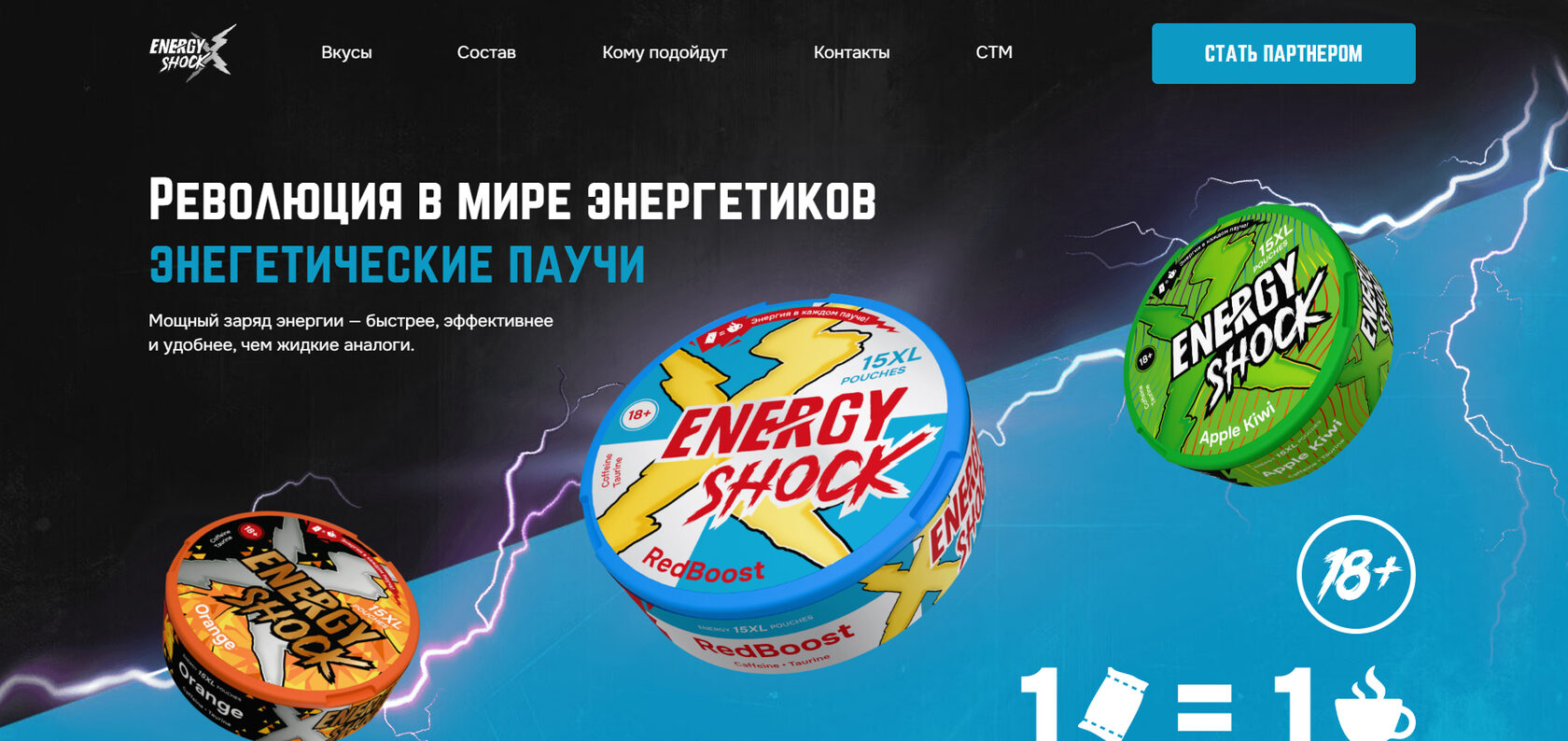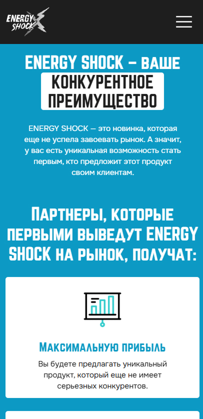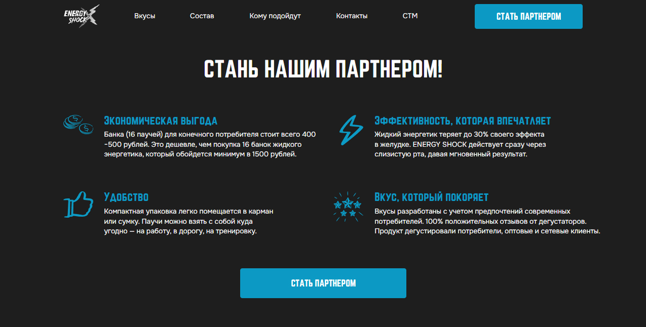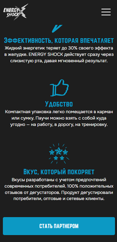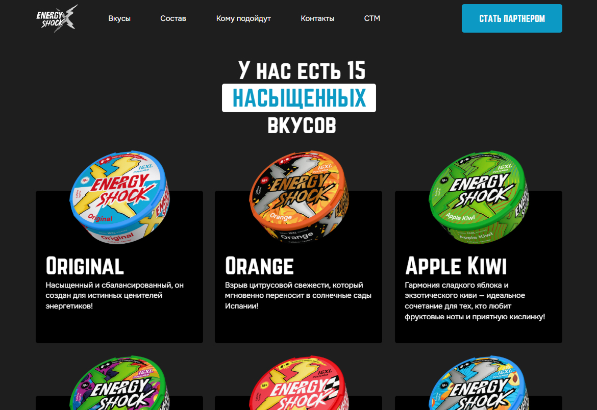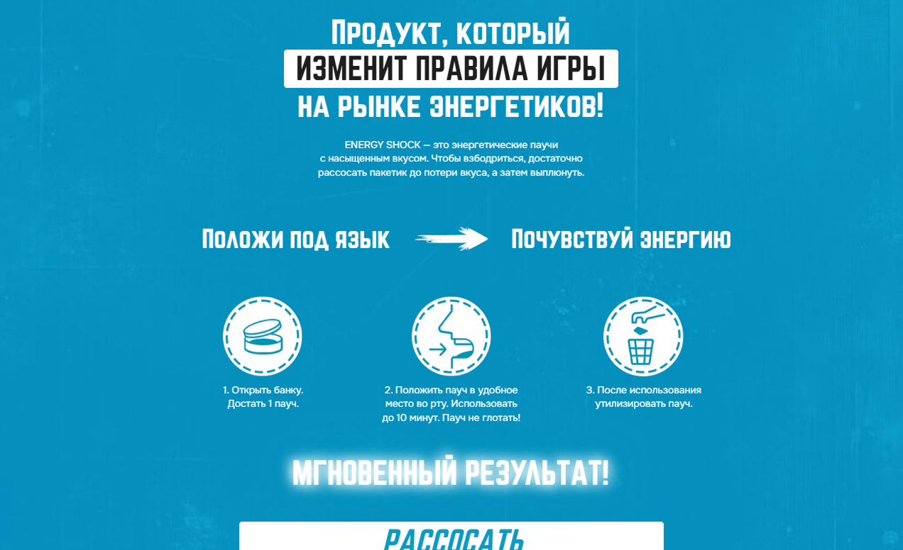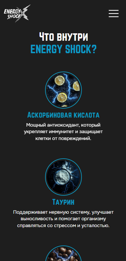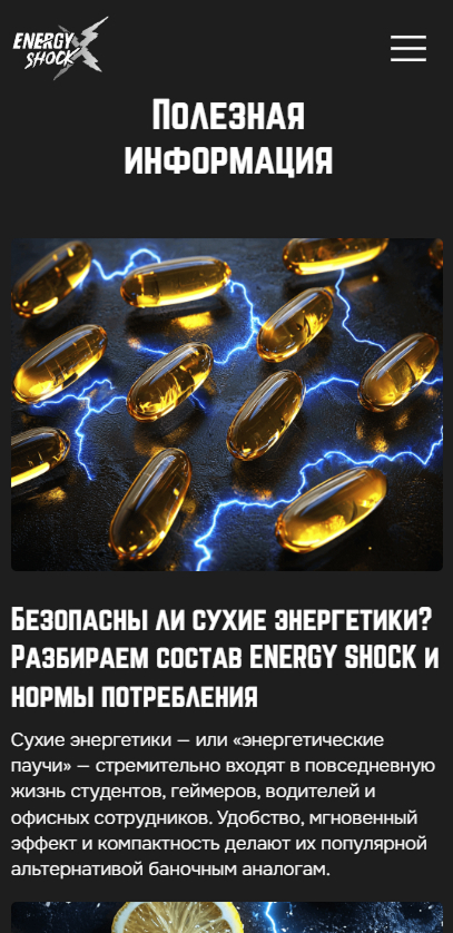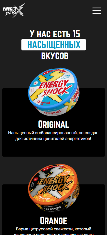 Разработка сайта для энергетических паучей Energy Shock